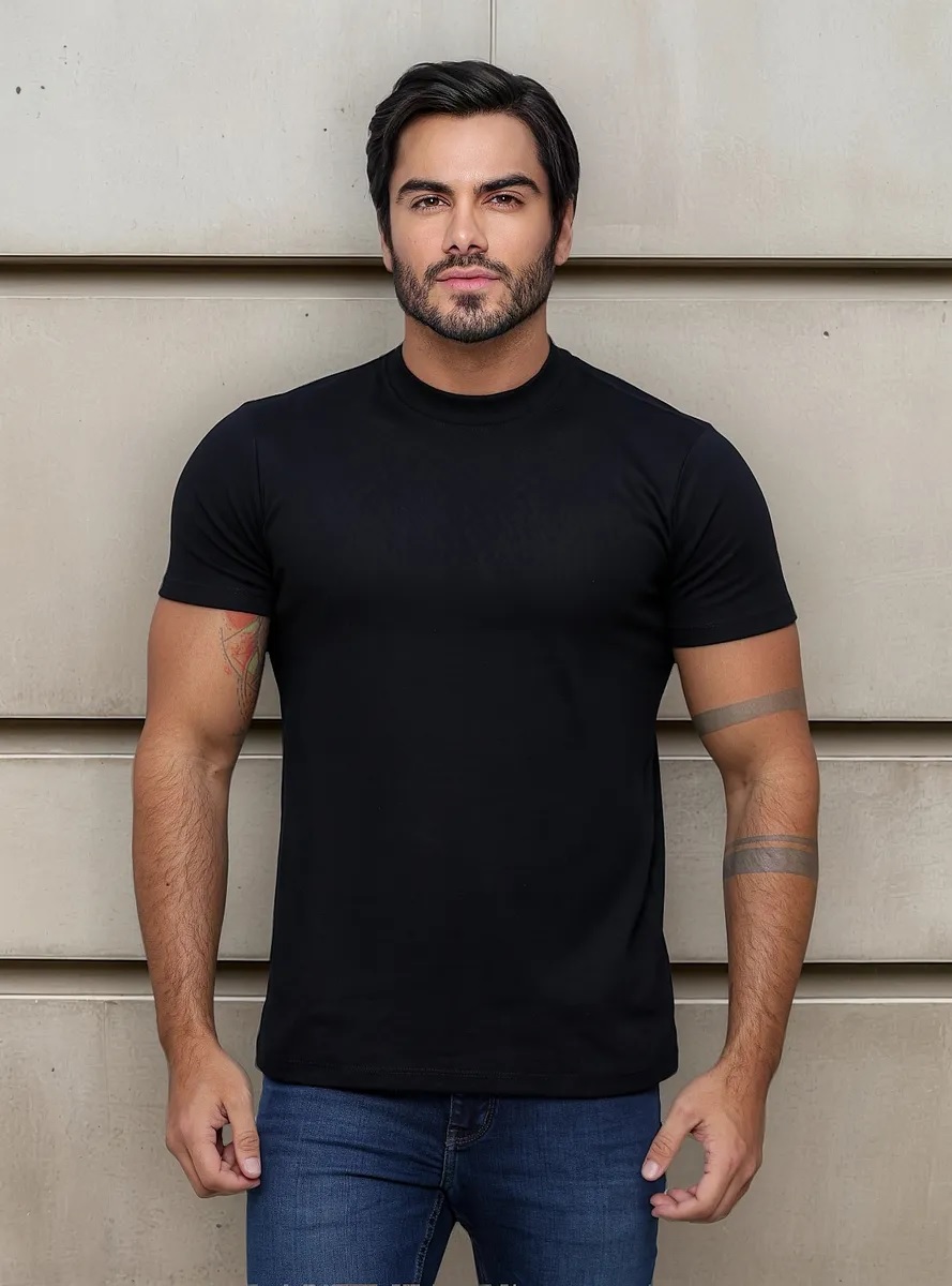 Camiseta Gola Média Slim — Estilo e Conforto para o Dia a Dia! A Camiseta Gola Média Slim em Malha Suedine é perfeita para o homem moderno que valoriza conforto e elegância.
